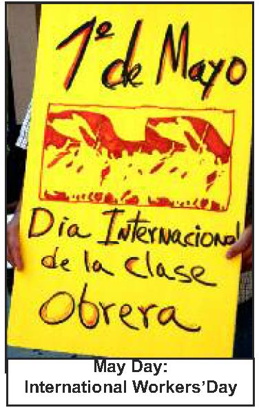 SEATTLE, WA, May 1: "Las luchas obreras no tienen fronteras!" chanted ICWP members as thousands marched this May Day along a route winding miles from the Central District to downtown. "Good one!' said an immigrant worker from El Salvador. Other bullhorns and marchers took up the chant. Another worker translated the chant into English so everyone would understand: "The workers' struggles know no borders." "No borders, No nations, smash racist deportations!" added still more.