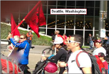 Since then this reformist voice has haunted the international communist movement. Today, that is the voice we need to strangle. The Bangladeshi workers wanting to avenge their buried sisters and brothers call for their bosses be hanged. Striking transit workers in South Africa are calling for their corrupt bargaining council to be castrated with razor blades. This clearly shows some deep class hatred of capitalism. Yet, we need go further than that: our call must be for workers' communist power. Our class must speak with only one voice: the voice of communist revolution. We must forever bury reformism no matter how militant it sounds. Our class – the toiling masses, soldiers and students of the world – must be mobilized for communism. This and only this will break forever the chains that enslave us to capitalism. In this vein, this May Day, the International Communist Workers' Party took modest but important steps to mobilize the masses for communism. We mobilized workers and youth to distribute Red Flag and our manifesto, Mobilize the Masses for Communism, in May Day marches in El Salvador, Mexico, Spain, Honduras, Seattle, Los Angeles and Oakland. The masses eagerly took our communist literature and our communist chants reverberated throughout those marches.