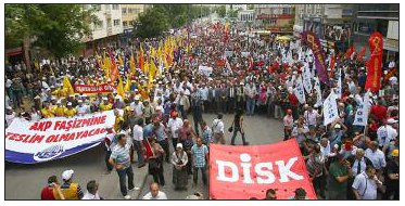 On June 4, thousands of workers (teachers, doctors, and others in two large labor federations) on a political “warning strike” marched in Istanbul and Ankara. The Türk Metal Union (with