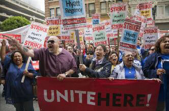Algunos describen nuestra meta como “justicia laboral” pero claramente esto significa más que la neutralidad de la gerencia en una campaña de sindicalización. Debe significar más de $ 15/hora en cinco años a partir de ahora, cuando aun $ 30.000 al año (el ingreso promedio hoy día de los trabajadores de hoteles en Pasadena hoy) no es un salario digno aquí.