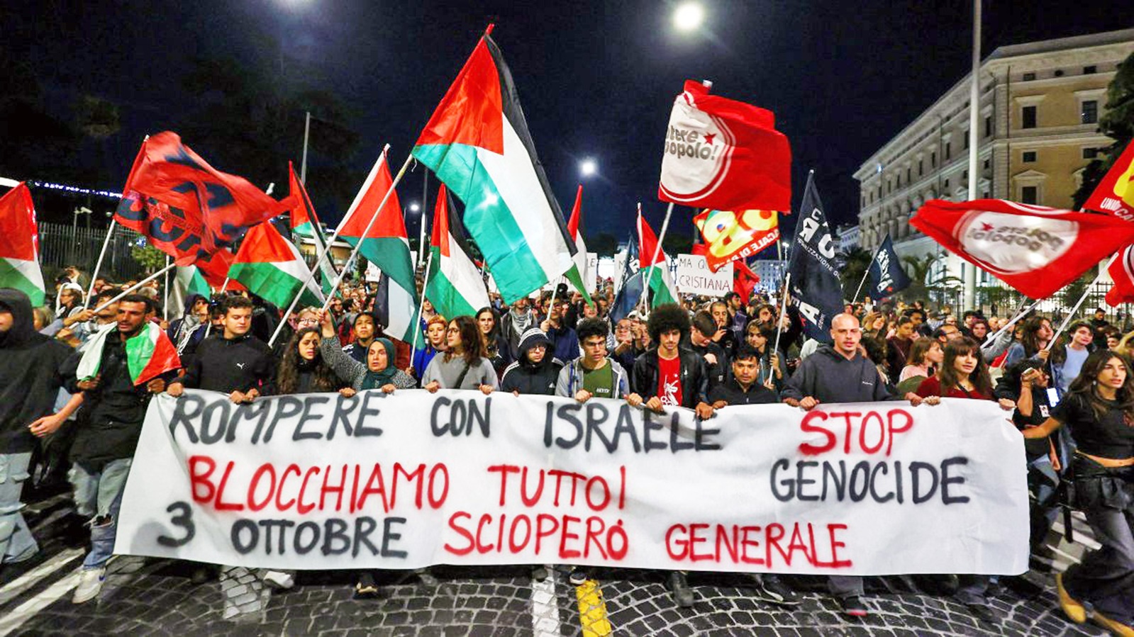 ROMA (ITALIA), 3 de octubre—Un millón de personas marcharon en Roma, mientras que los trabajadores italianos paralizaron Italia con una huelga general, exigiendo el fin del genocidio israelí en Gaza. ¡Alto al Genocidio!