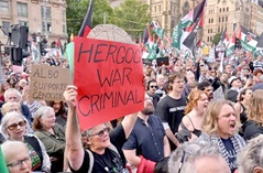 En la imagen de abajo: Sídney, Australia, 9 de febrero – Masas atacan al primer ministro israelí Herzog, de visita, y al primer ministro australiano Anthony Albanese, calificándolos de criminales de guerra.